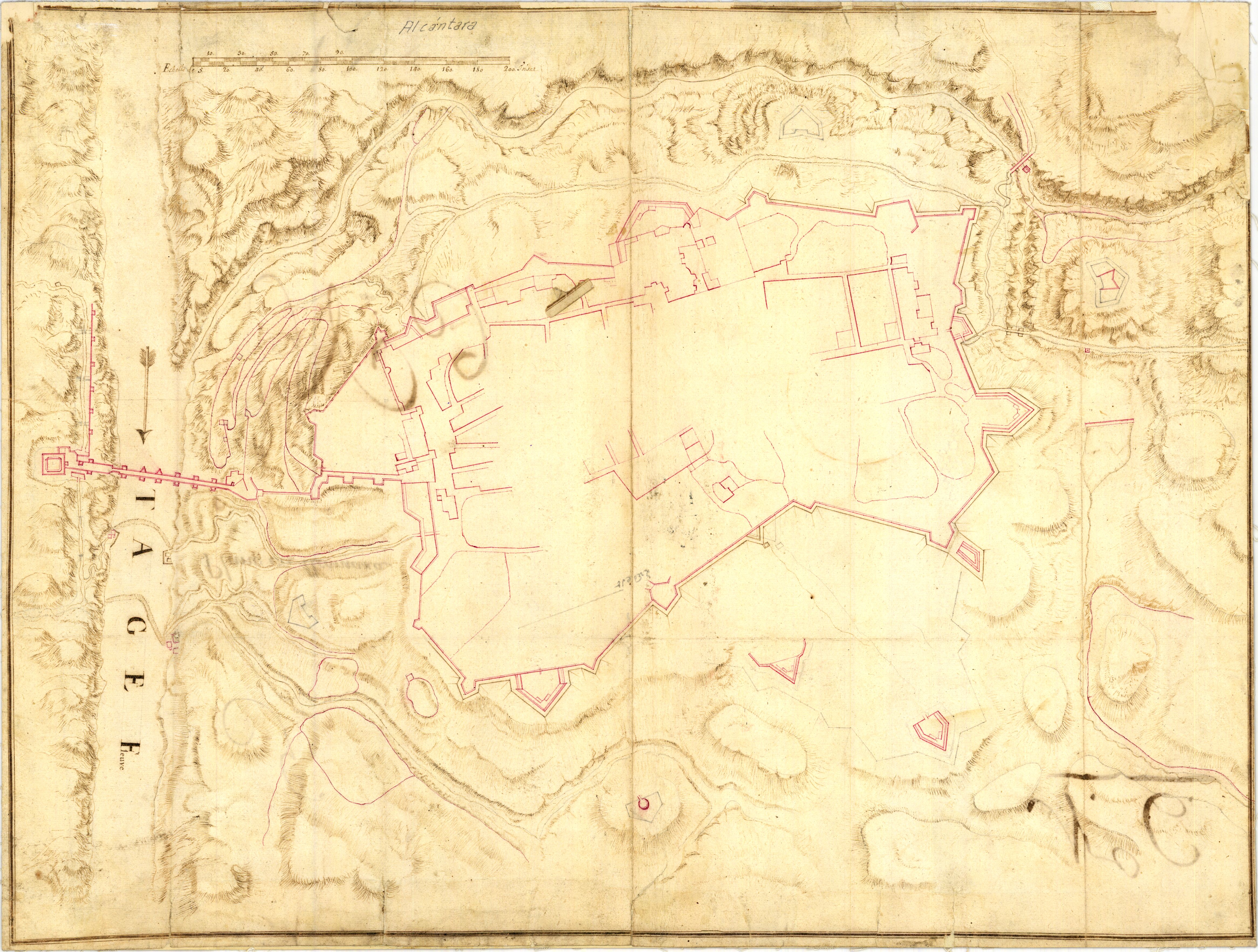 NOTAS Título propio tomado del verso. – Mención de responsabilidad tomada del catálogo del SGE: "Extremadura. Siglos XVIII a XIX". 1972, p. 65. – Relieve representado por normales. – Manuscrito a plumilla en tintas negra y roja. – Indica el curso del río Tajo con flecha. – En el margen superior, manuscrito a lápiz: "Alcántara" |