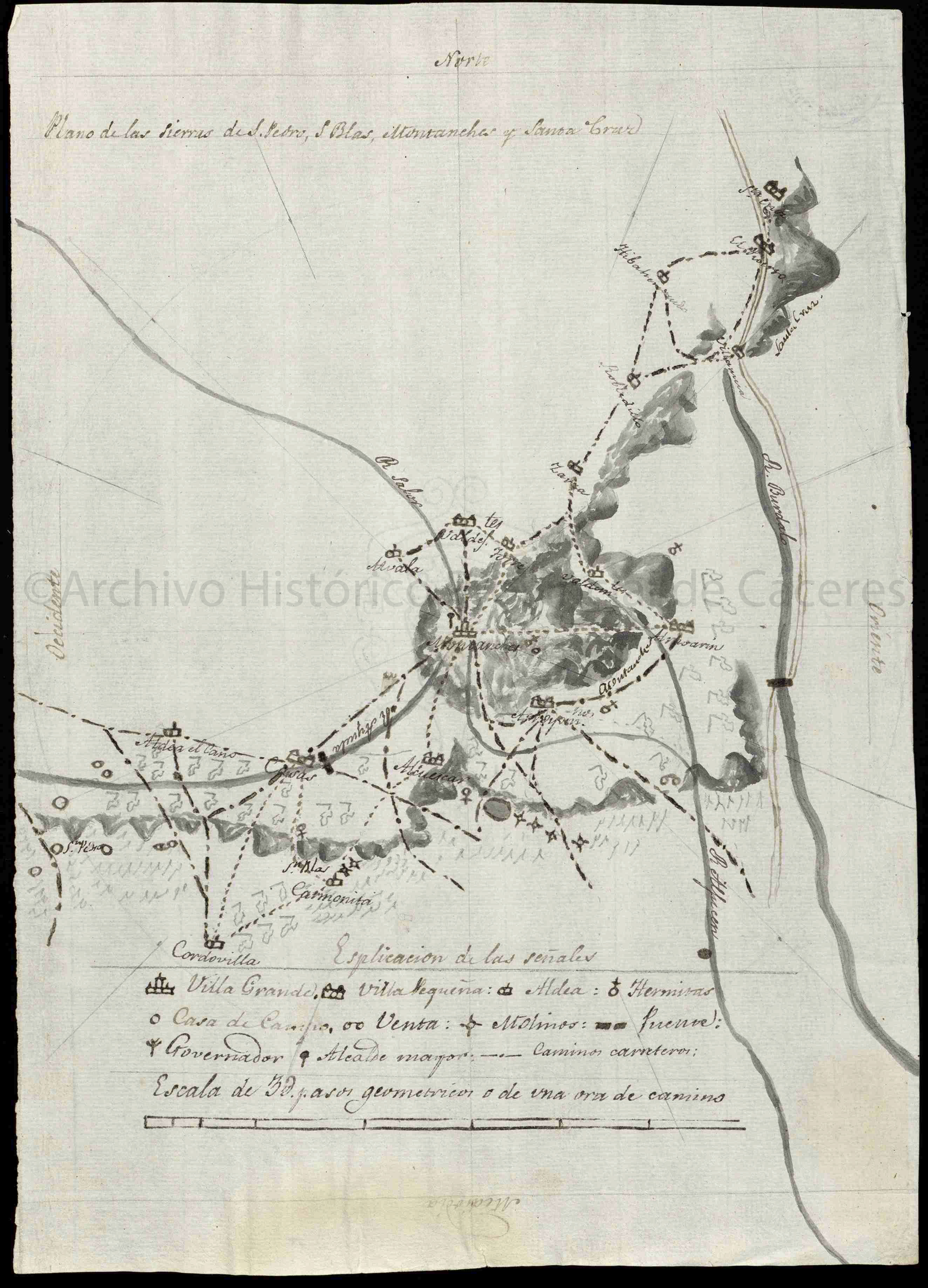 Plano de las Sierras de San Pedro, San Blas, Montánchez y Santa Cruz