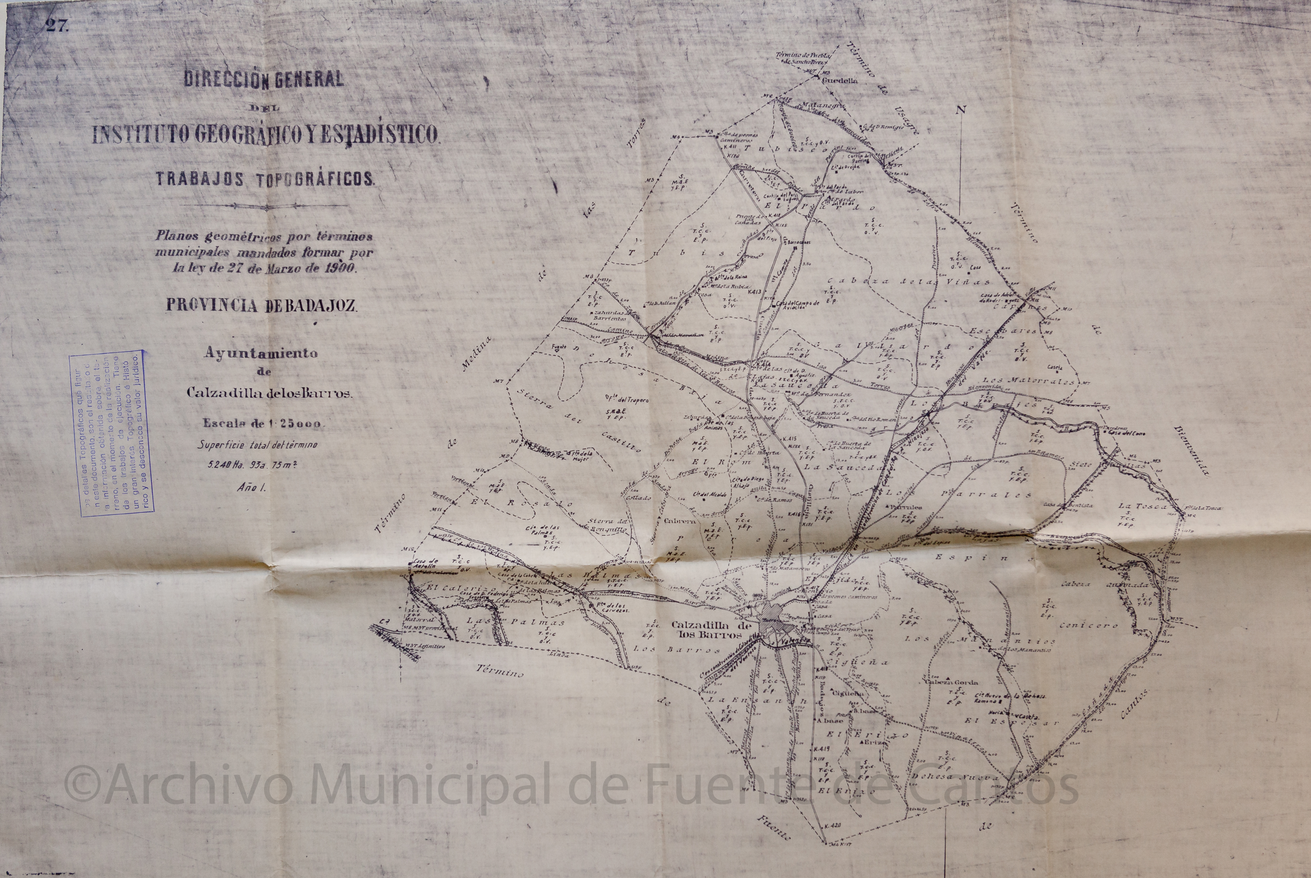 NOTAS Representación del término municipal de Calzadilla de los Barros, red de caminos, hidrografía, límites administrativos y puntos kilométricos. – Abundante toponimia. – Forma parte de la colección de Planos Geométricos por Términos Municipales mandados formar por Ley de 27 de marzo de 1900. – Fotocopia del original. – El documento original se encuentra en los Fondos Cartográficos © Instituto Geográfico Nacional www.ign.es |