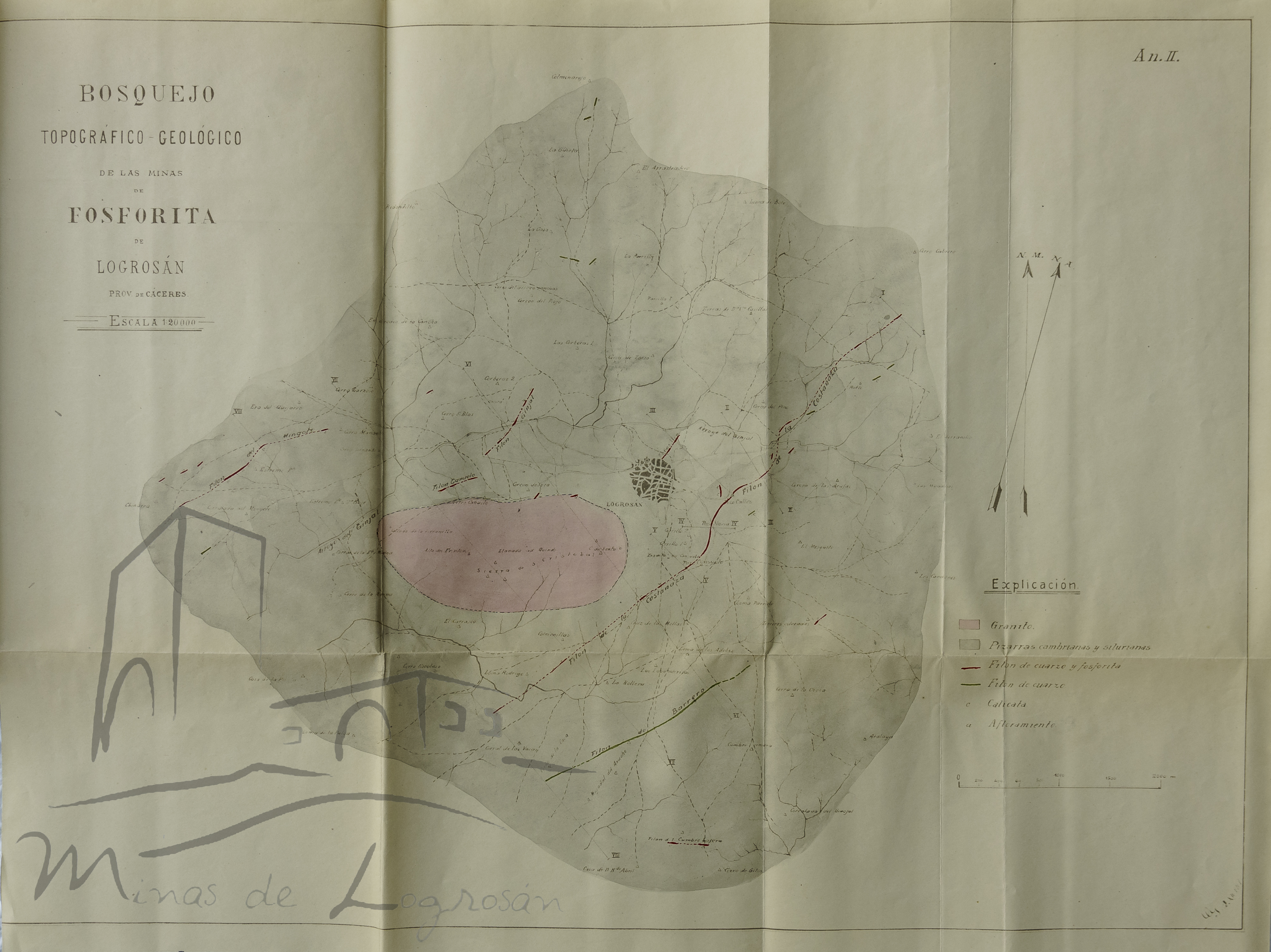 Bosquejo topográfico-geológico de las minas de fosforita de Logrosán : provincia de Cáceres
