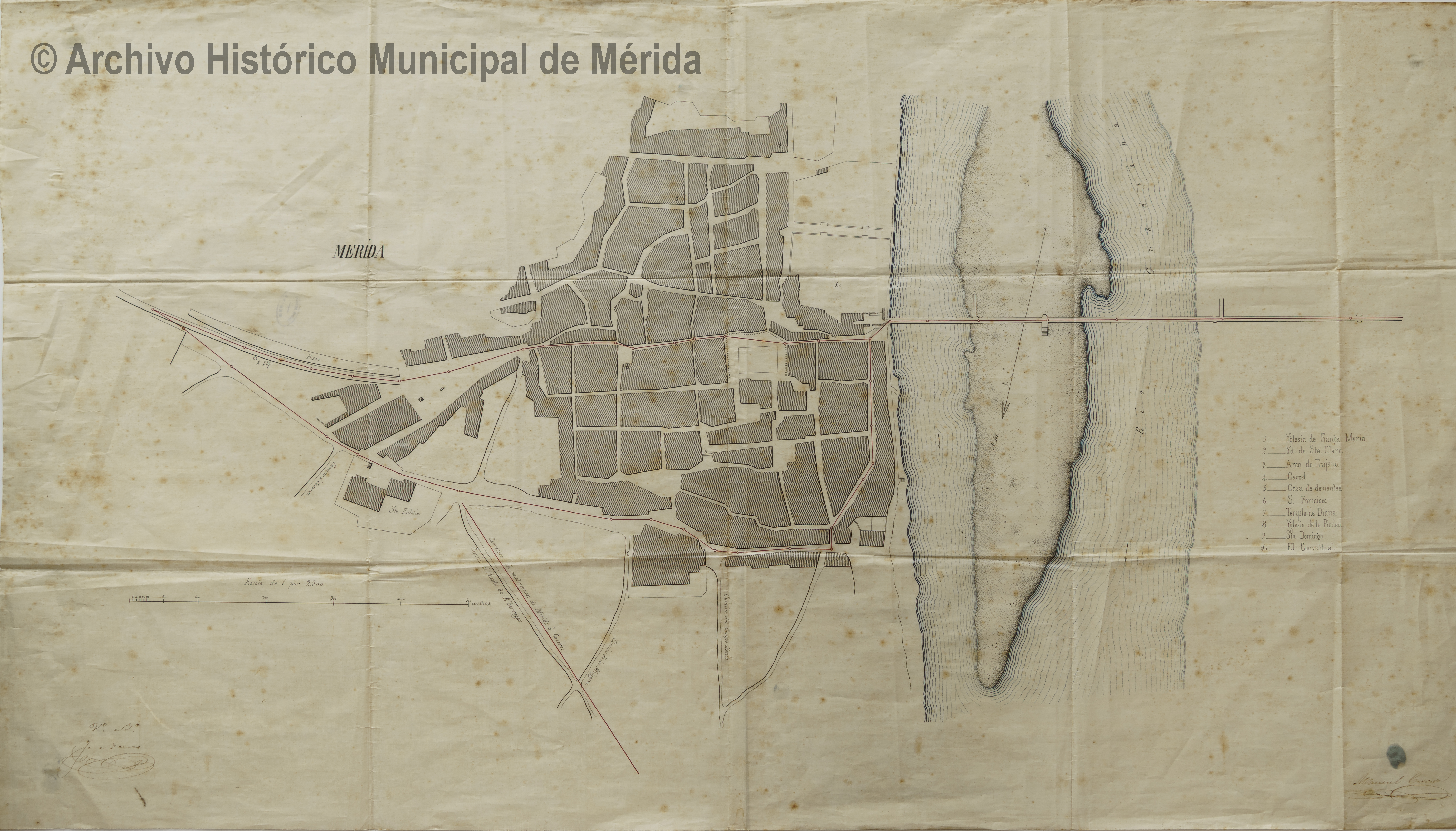 [Plano del Proyecto de carretera de primer orden de Madrid a Badajoz, travesía de Mérida]