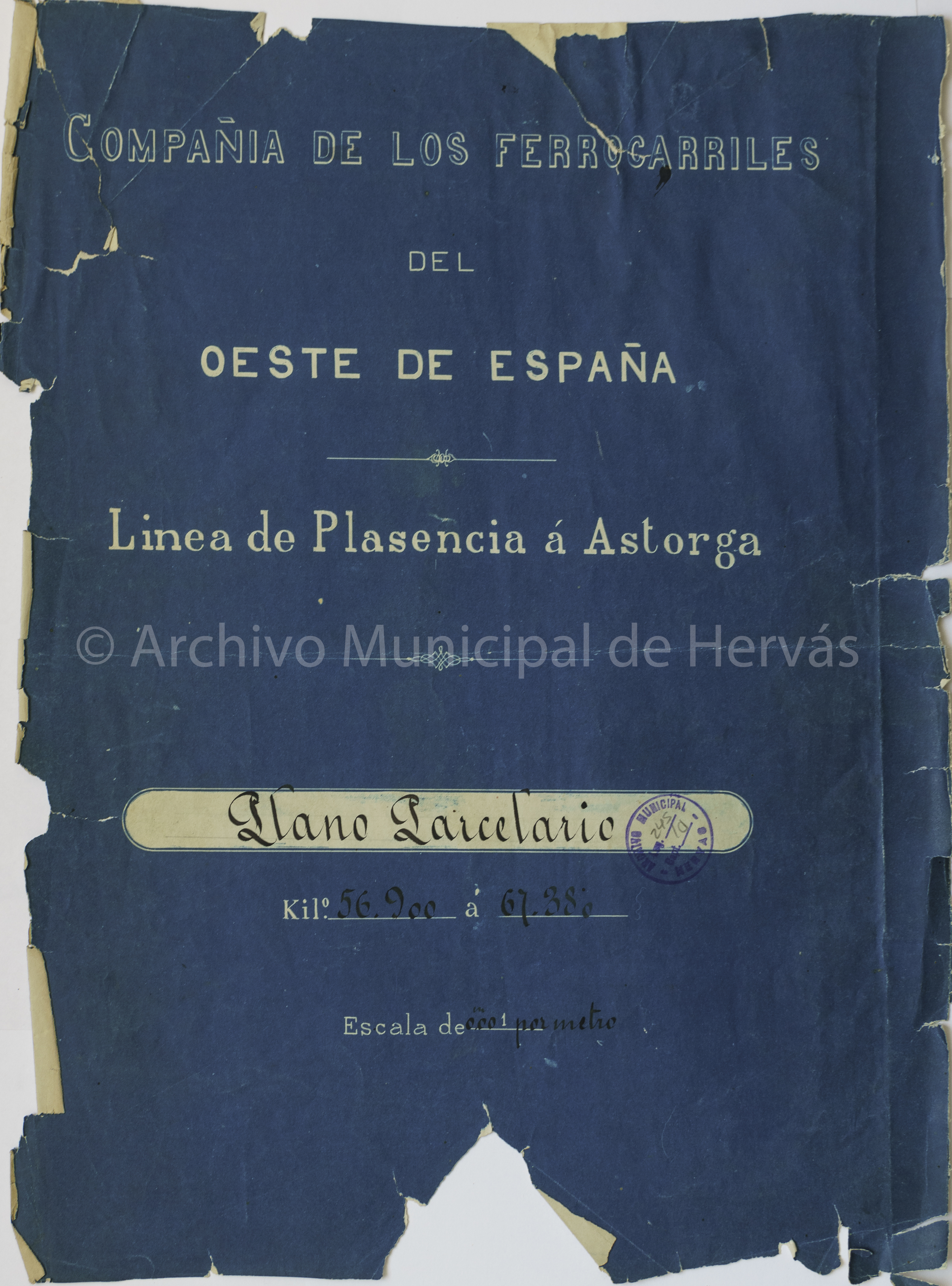 NOTAS Representación de la línea de ferrocarril y planos parcelarios que van desde Plasencia hasta Astorga en el tramo que discurre por Hervás, indicando la propiedad de las parcelas, superficie y el tipo de uso agrícola del suelo. – Abundante toponimia. – Toponimia localizada fundamentalmente en la línea del ferrocarril. – Fotocopia del original en blueprint |