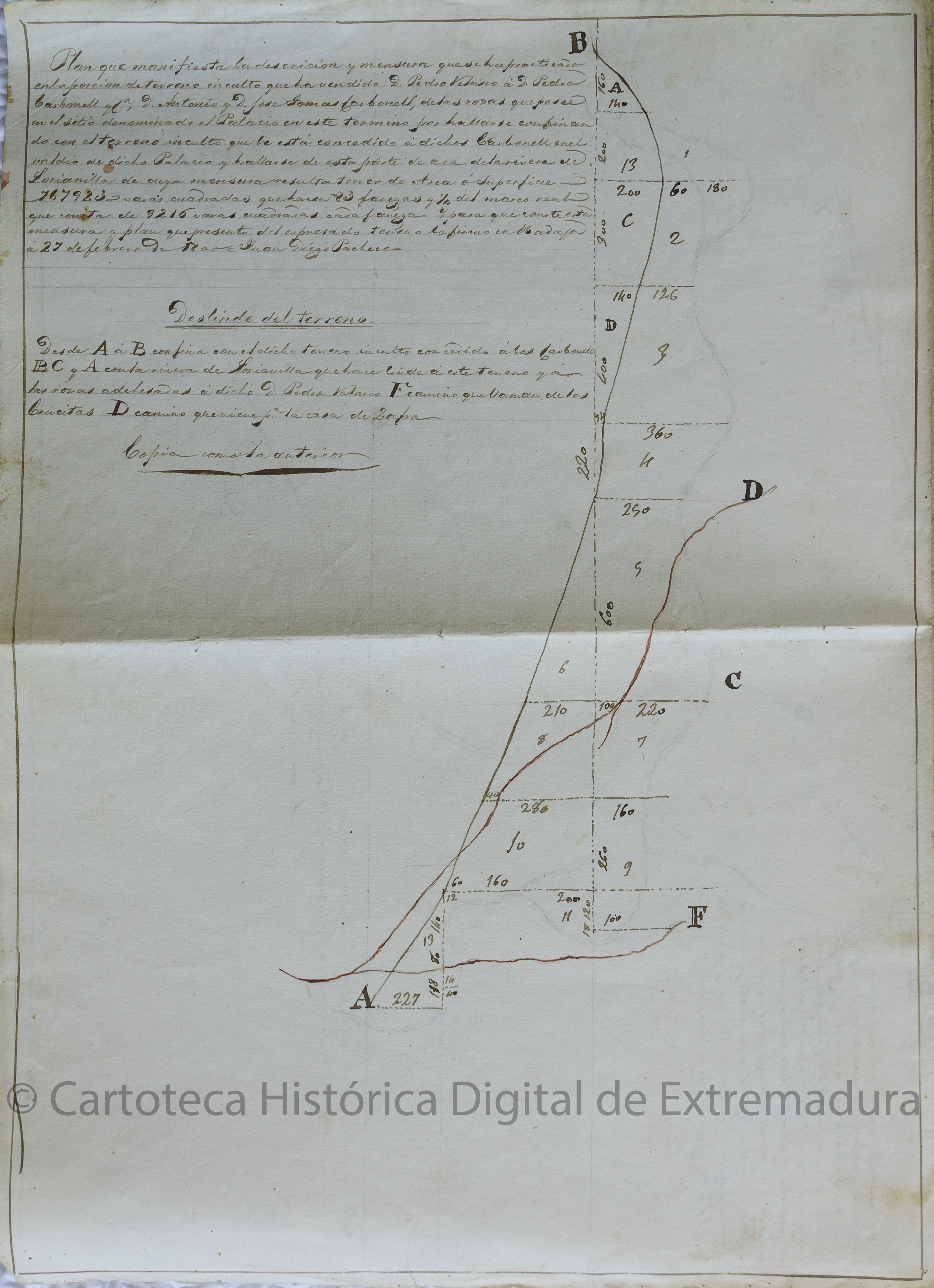 Plan que manifiesta la descrición [sic] y mensura que se ha practicado en el terreno inculto...