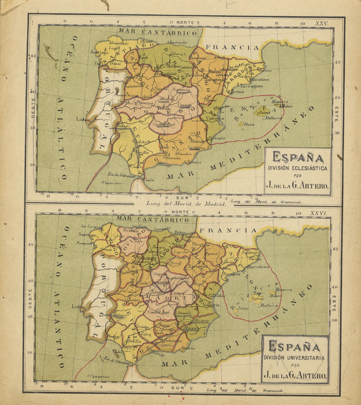 España : division eclesiástica; España : división universitaria