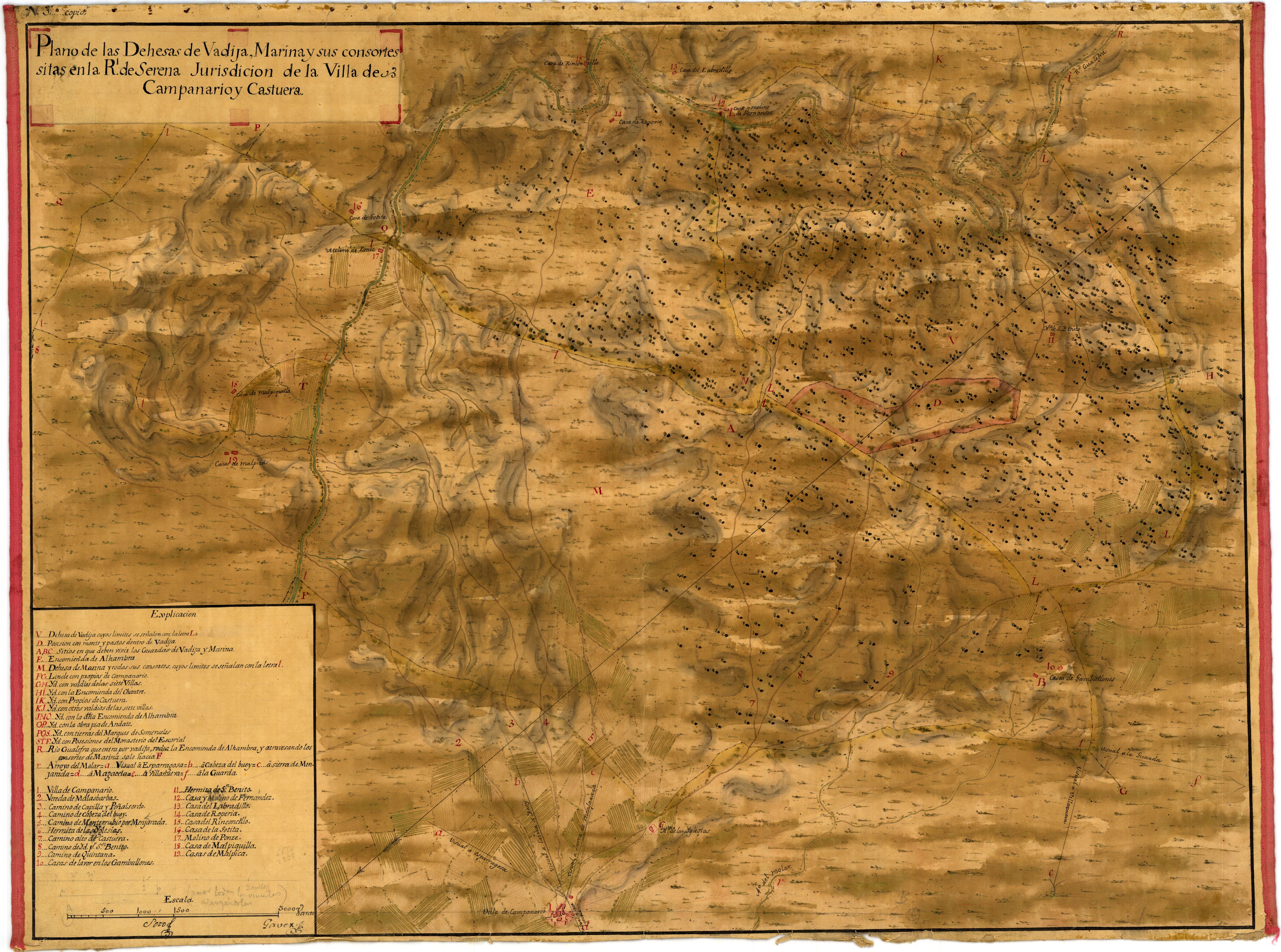 Plano de las Dehesas de Vadija, Marina y sus Consortes sitas en la Rl. de Serena [...]