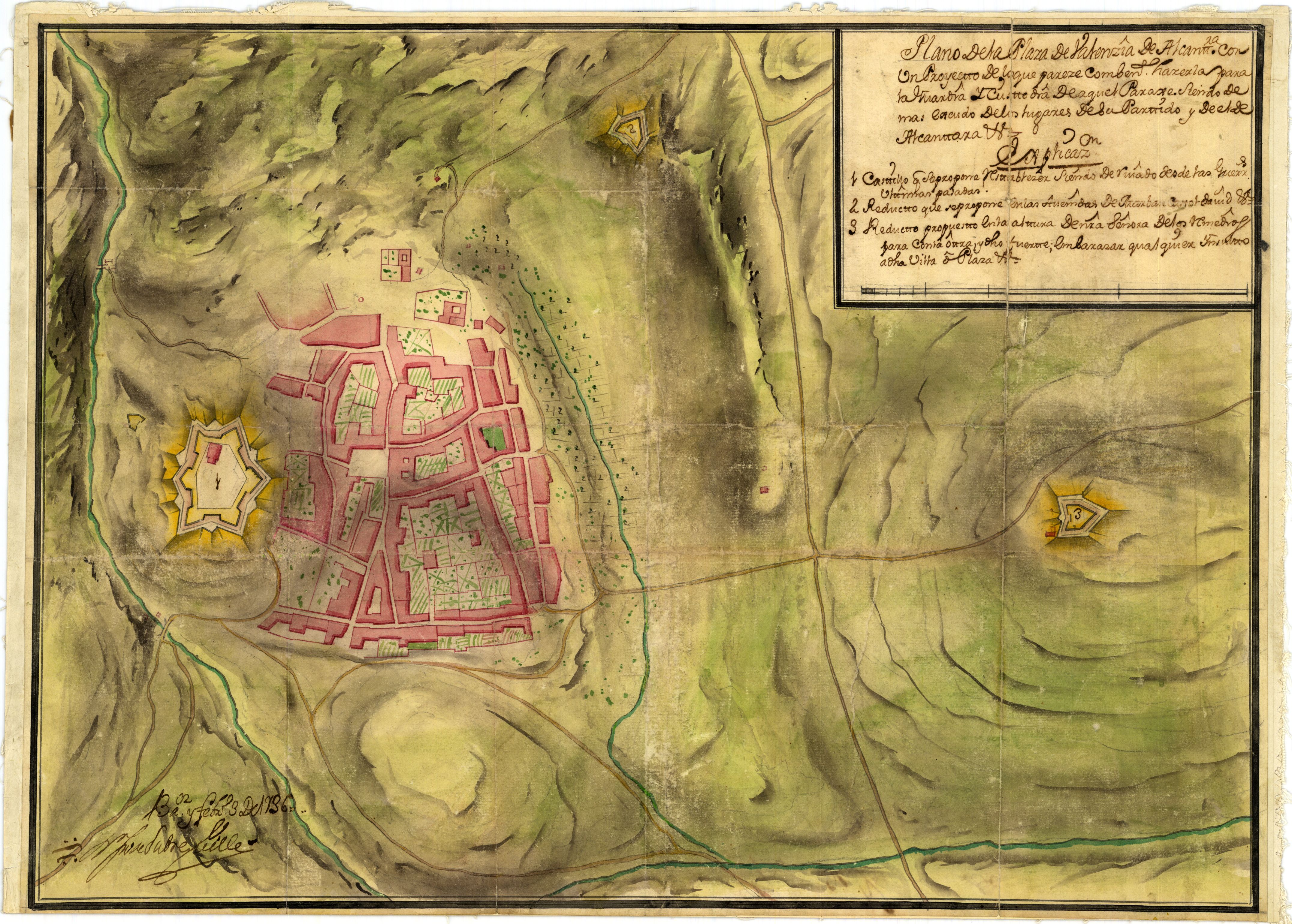 Ydea del Plano dela villa de Balenzia de Alcantara y sus contornos [...]